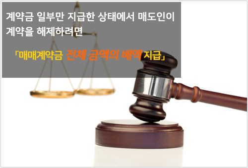 실제로 매도인이 매매 계약서를 작성하면서 매수인으로 부터 계약금 일부만 받은 상태에서 매매계약을 취소하려면, 실제로 받은 돈이 아니라 원래 약속한 계약금을 기준으로 위약금을 산정해야 한다는 판례도 있습니다.