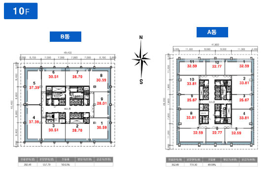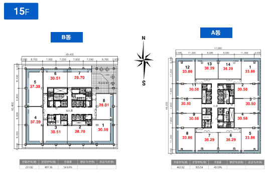 ○ 전용면적 : ▲2~8층(449.94평), ▲9층(277.79평), ▲10층(282.41평), ▲11~29층(380.37평)