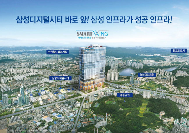 수원 '에이스 스마트윙 영통' 지식산업센터가 전문가들이 추천하는 그런 지식산업센터입니다. 수원은 글로벌 기업인 삼성전자, 전기 등이 있는 지역이어서 전통적으로 크고 작은 기업들이 타 도시에 비해 월등히 많은 지역 중의 하나입니다. 또 삼성 디지털시티를 비롯해 삼성전자 기흥ㆍ화성 캠퍼스 등이 가까워 지식산업센터로서 입지적인 메리트가 높은 것은 물론 수원 일반산업단지 등도 가까워 인근 협력 업체들의 시너지 효과를 얻을 수 있습니다.