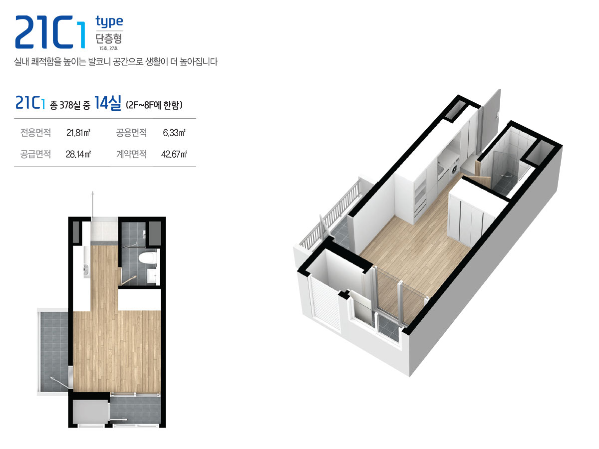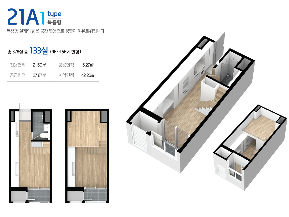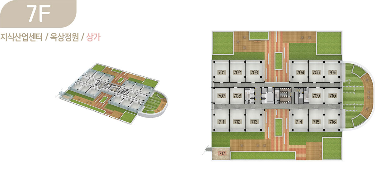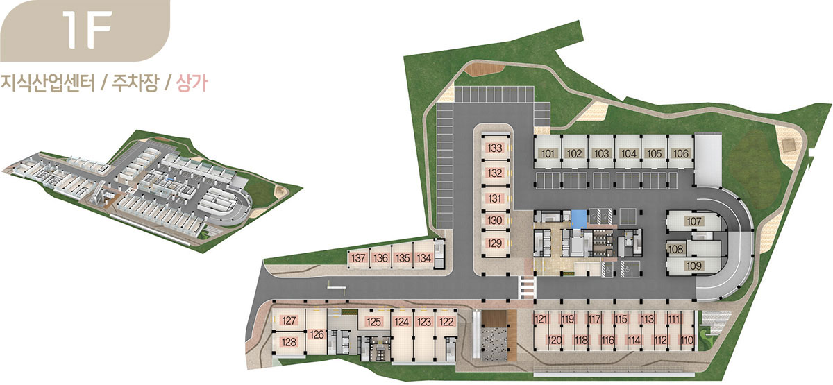 드라이브인 시스템이 적용된 공장형 지식산업센터는 지하 2층부터 지상 6층까지로 제조업, 물류창고 등 원자재나 물류량이 많은 업체가 사용하기에 안성맞춤이며, 오피스형 지식산업센터는 지상 7층부터 15층까지로 모든 호실을 중소형 크기의 섹션 형태로 구성해 입주 기업들이 원하는 만큼 공간으로 활용할 수 있도록 하였습니다.