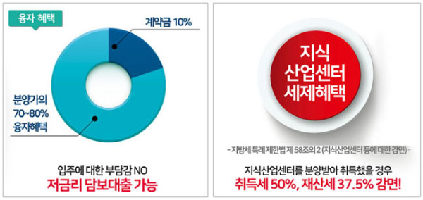 분양받고 직접 입주해서 사용하는 기업들에게는 취득세의 50%, 재산세의 37.5%를 감면 혜택이 주어집니다.(2022년 12월 31일까지, 중소기업에 한함, 지원시설제외)