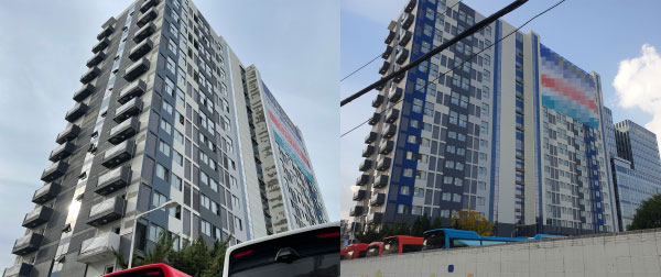 지식산업센터 입주 직원들이 사용하는 기숙사는 최근 주거 트렌드를 반영해 롯데건설 만의 특화 설계를 반영했습니다. 모든 호실이 단층형과 복층형 원룸 두 가지 타입의 혁신적인 평면구성으로 공급되었습니다. 공간 활용을 최대한 하기 위해 세탁기와 냉장고, 시스템 에어컨 등의 가전과 현관 신발장, 붙박이장, 계단 수납공간 등의 가구가 기본 제공되는 빌트인 시스템이 특징입니다. 또한 입주민을 위한 전용 층별 라운지, 취사장, 공중정원 등 입주민의 편의를 위해 커뮤니티 시설까지 갖추었습니다.