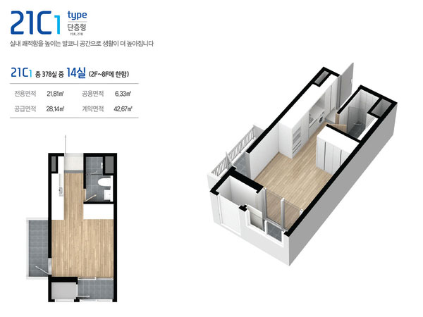 ○ 단층형 : 21A1 타입(130실), 21C1 타입(14실)