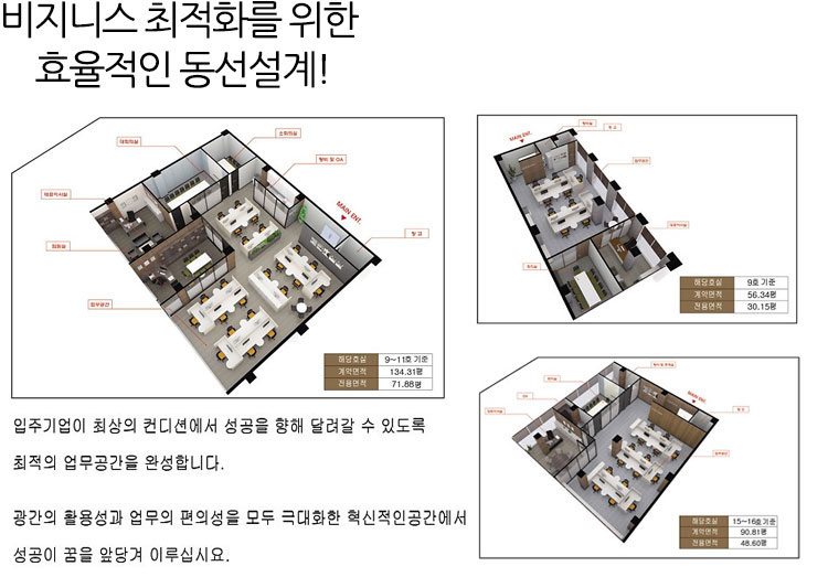 하지만 지금은 국내 경기둔화로 사무실 이전 수요가 줄면서 입주율이 주춤한 상태지만, 역세권 입지의 편리한 교통 환경과 업무 편의성을 갖추고 있는 곳이어서 기업들의 임대 및 매매 문의는 꾸준히 이어지고 있습니다.