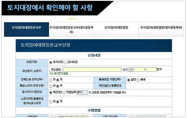 ① 토지대장에 기재된 토지의 소재지와 지번이 임대차하려는 상가건물의 토지 소재지 및 지번과 일치하는지를 확인해야 합니다.