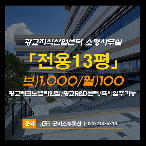 광교 소형 사무실 임대 안내ㅣ신축 지식산업센터 전용13평 고층호실 본문